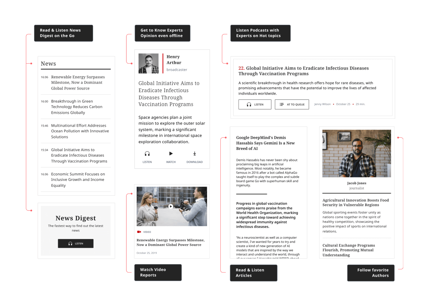 Introduction of a text-to-speech module, offering an alternative way to consume long-form content.Information Architecture: